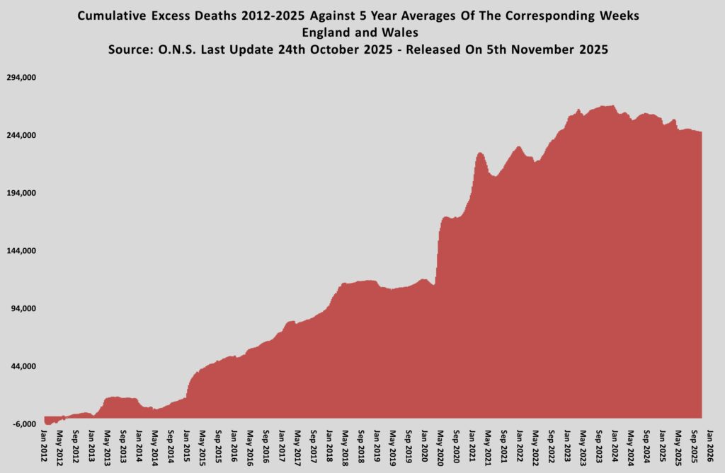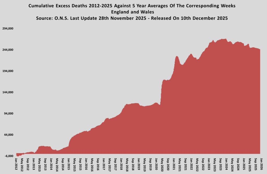 This is a histogram of the cumulative excess deaths in England and Wales since 2012, as at